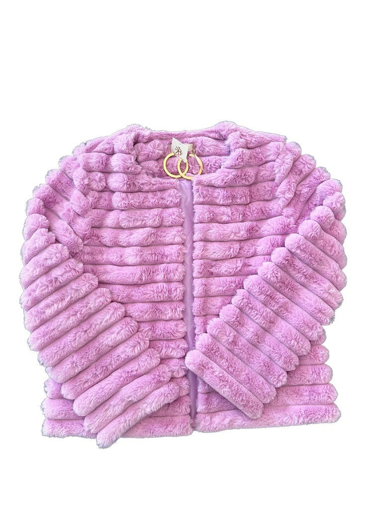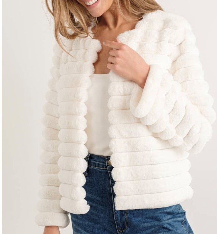 Stripe Faux Fur Coat